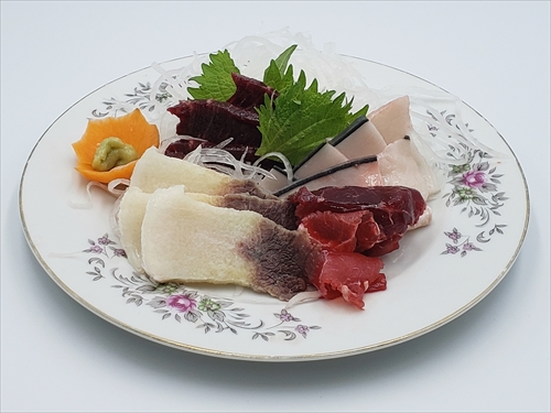 | ① | 赤身鯨肉を4cm×5cm、厚さ5mm程度に切る。 |